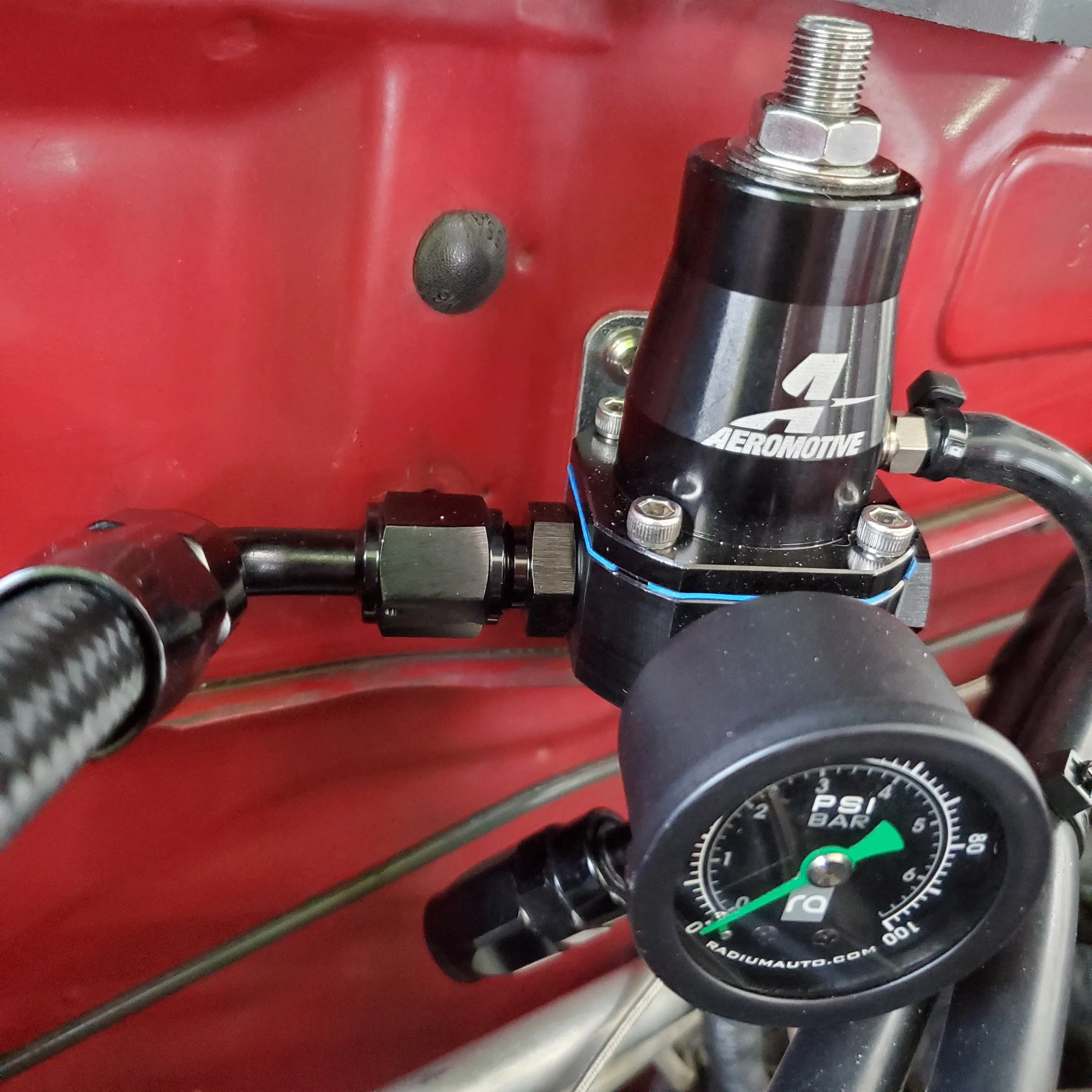 I got an Aeromotive 340 Stealth 11142. It was bigger than I needed, but that’s ok. I ran -6AN line for feed and return on my setup. The ethanol content sensor is placed just after the pump. There is a one-way check valve before an Aeromotive 12345 10-micron filter on the feed side. In order to run E85, I got a set of Bosch 850cc injectors from Fuel Injector Connection. I have the B16 Spec V intake manifold, so I got a junkyard Rogue fuel rail and had a mild steel -6AN fitting welded on the end of it for return by the guys at United Speed World in Tampa, FL. After the fuel rail, I went with an Aeromotive 13136 fuel pressure regulator and put a Radium fuel pressure gauge on the front port. For good measure, I found a 12” inline single-pass fluid cooler from Allstar Performance to run on the return side before a PQY 100-micron fuel filter just before the fuel gets dumped back into the tank. That was very complicated. I’m also running a Stinger solid state relay as advised by my tuner to supply the power the larger pump needs.